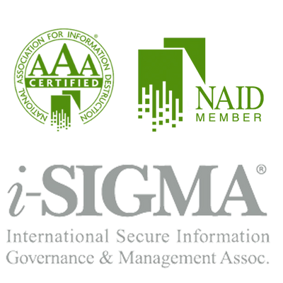 We can provided certificates of destruction with serial number(s), upon request. An email address is required at drop off to receive a certificate of destruction. NAID AAA certificates ensure compliance.
